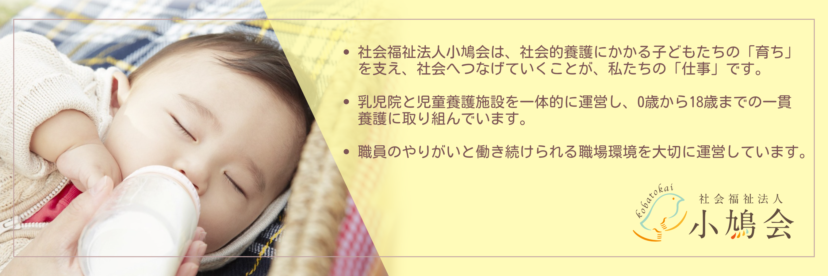| 業務内容 | 乳児院・児童養護施設・児童家庭支援センターを併設の複合施設において、 家庭で養育できない事情のある乳幼児童の養育及び日常生活処遇 |
